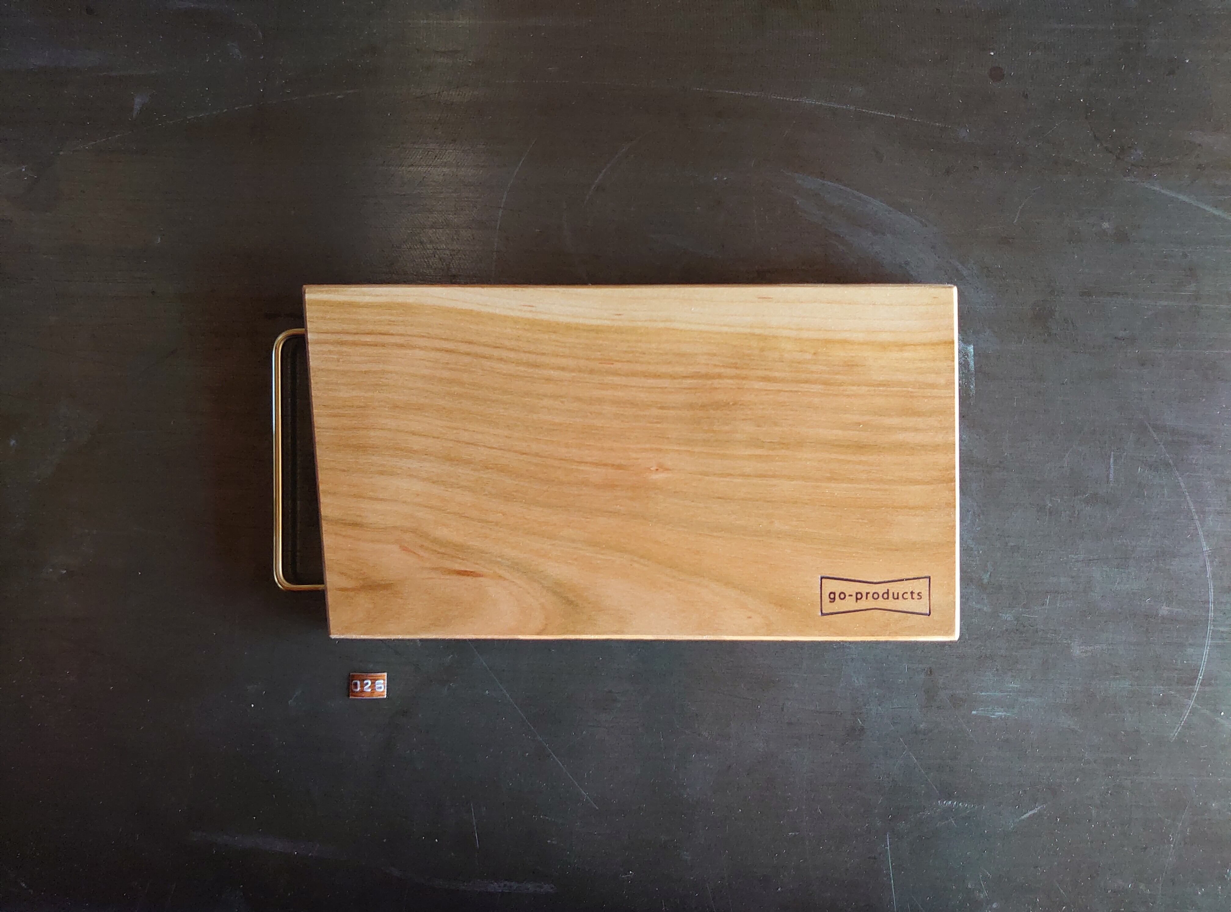山桜の木目にサイドは炭クロに染め、真鍮取っ手をつけて品があるボードに磨き上げました。。