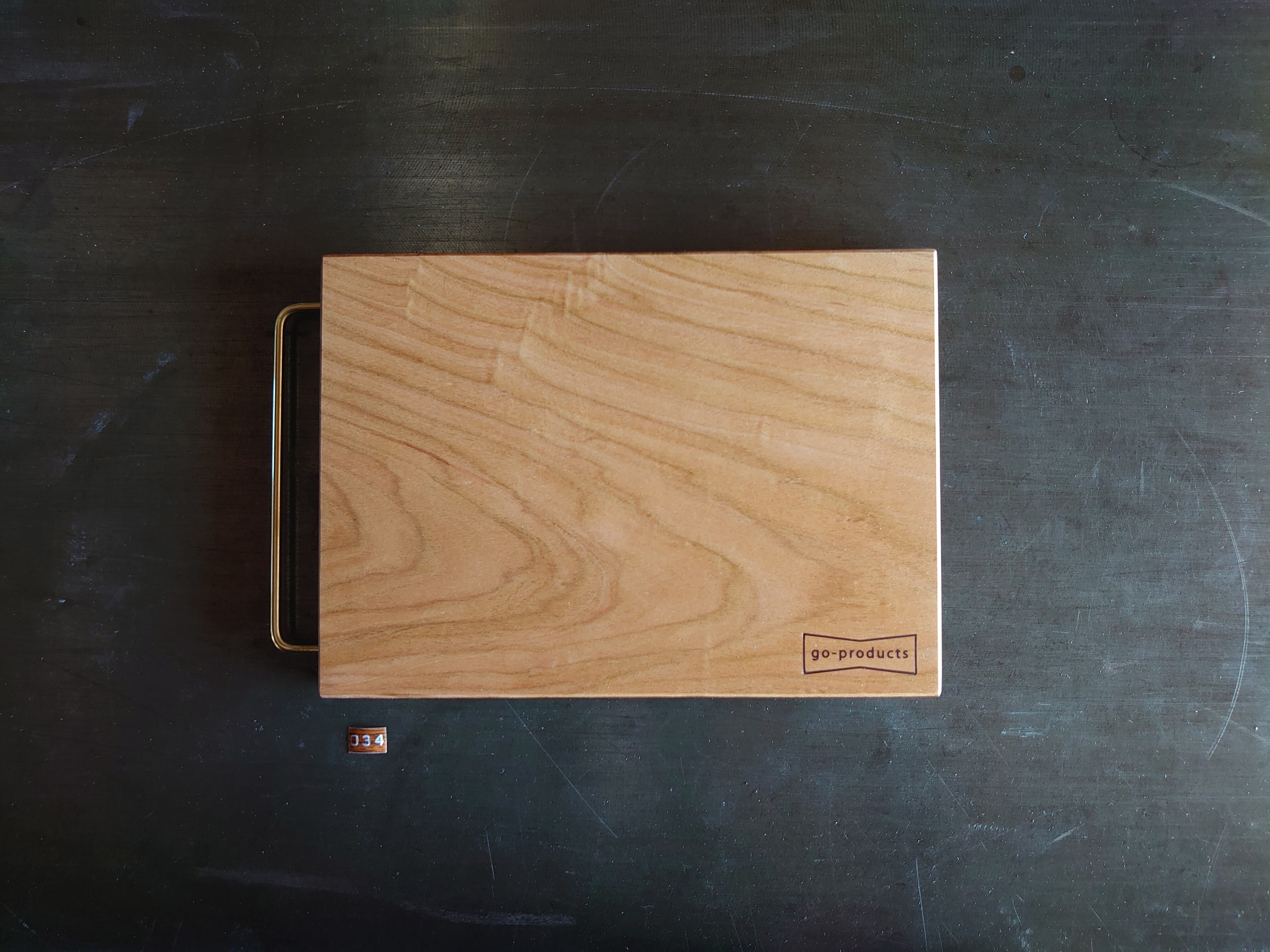 山桜の木目にサイドは炭クロに染め、真鍮取っ手をつけて品があるボードに磨き上げました。。